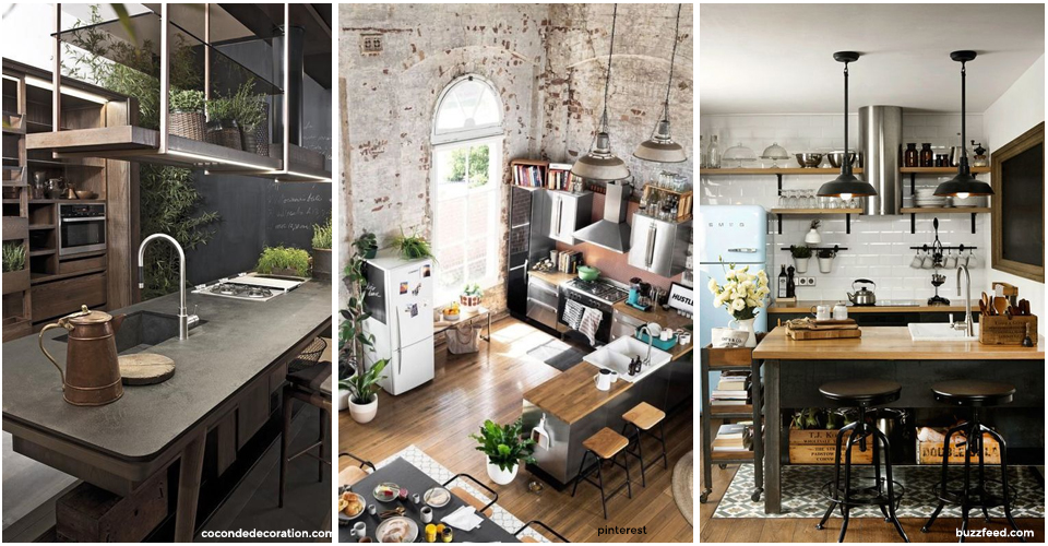 - Une cuisine industrielle. Pas besoin d’avoir un loft new-yorkais pour une cuisine à inspiration industrielle. Utilisez du bois et du métal comme matériaux, suspendez des beaux luminaires et remplacez les meubles hauts par des étagères sur lesquelles vous pourrez poser des pots, des épices, des ustensiles de cuisine et même votre belle vaisselle.